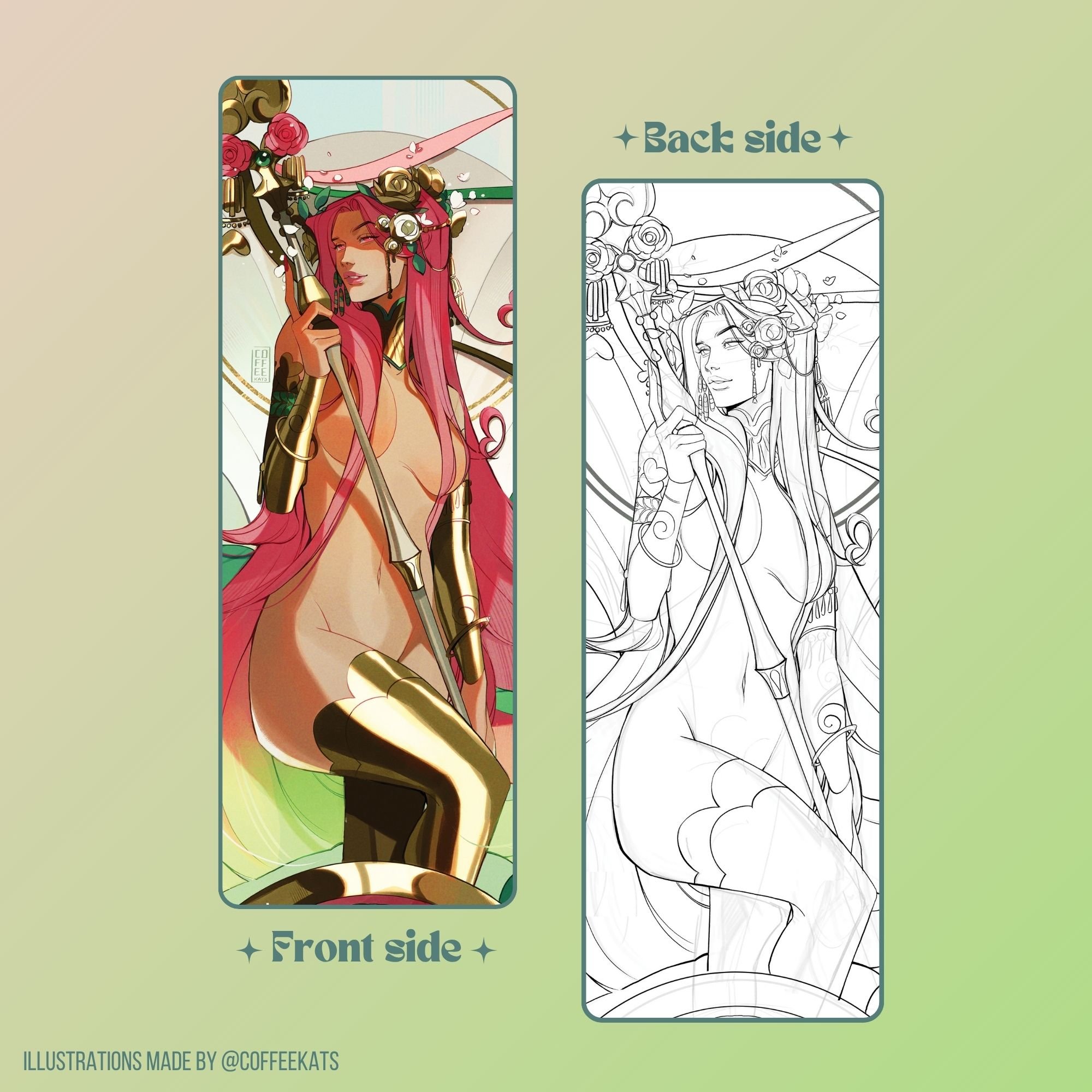 ✧ All bookmarks are double sided - with the finished colored illustration on the front and the inked/sketch piece on the back.