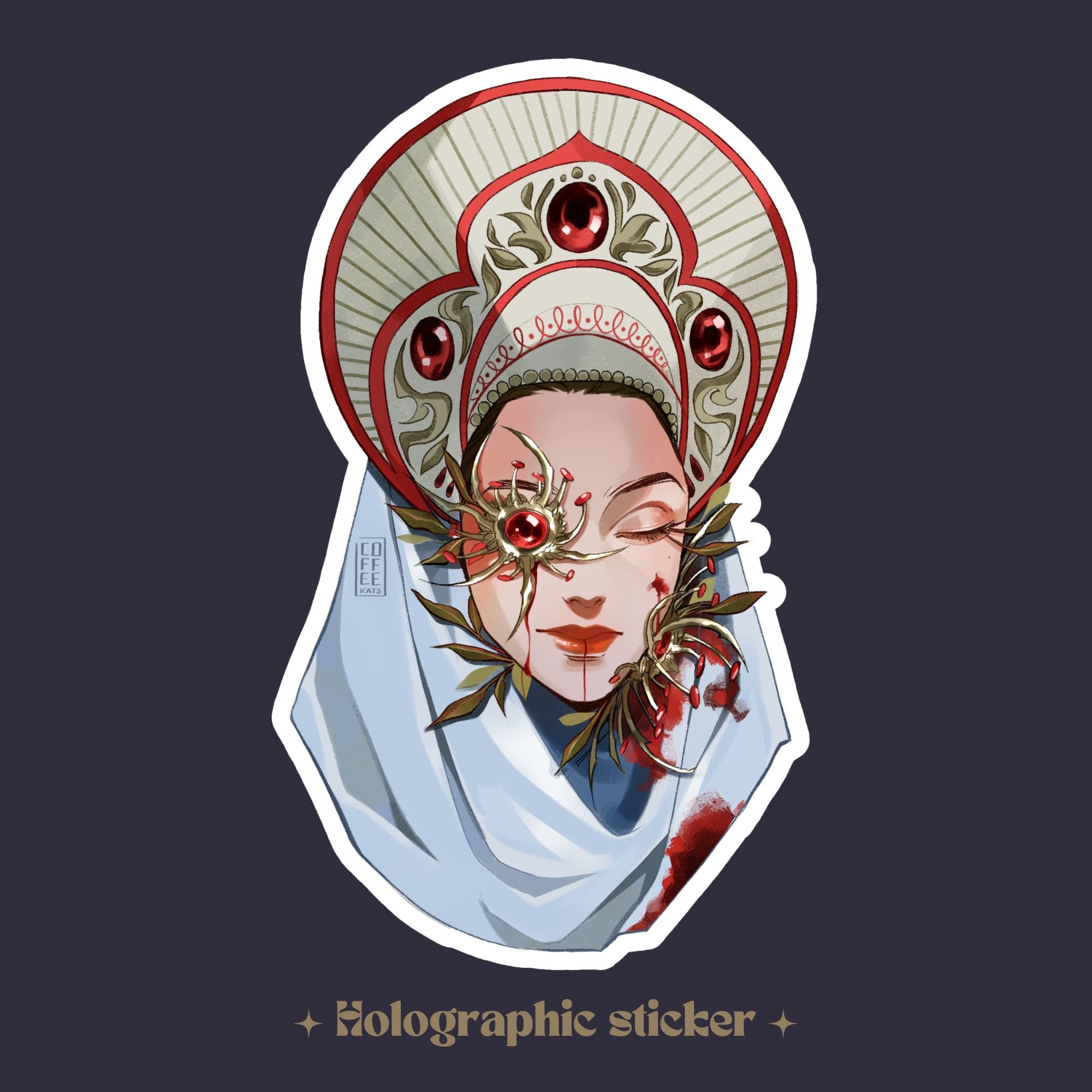 ✧ Die-cut vinyl stickers with a matte finish and reflective holo detailing, featuring an original character illustration. Suitable for decorating multiple surfaces such as book/journal/sketchbook covers, laptops, water bottles, etc. (safe for dishwashing!)