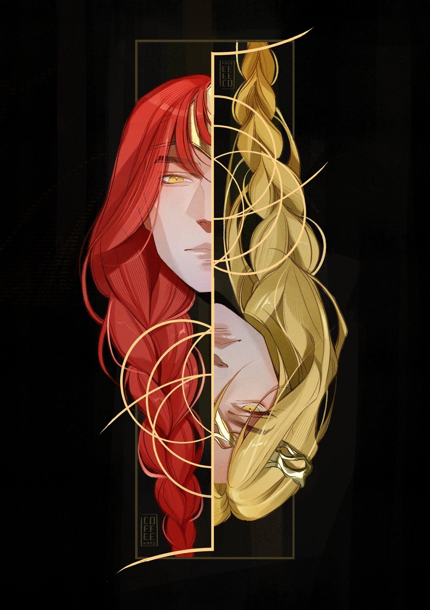 ✧ Illustrations inspired by the Empyrian Gods Marika and Radagon, from the popular video game "Elden Ring"