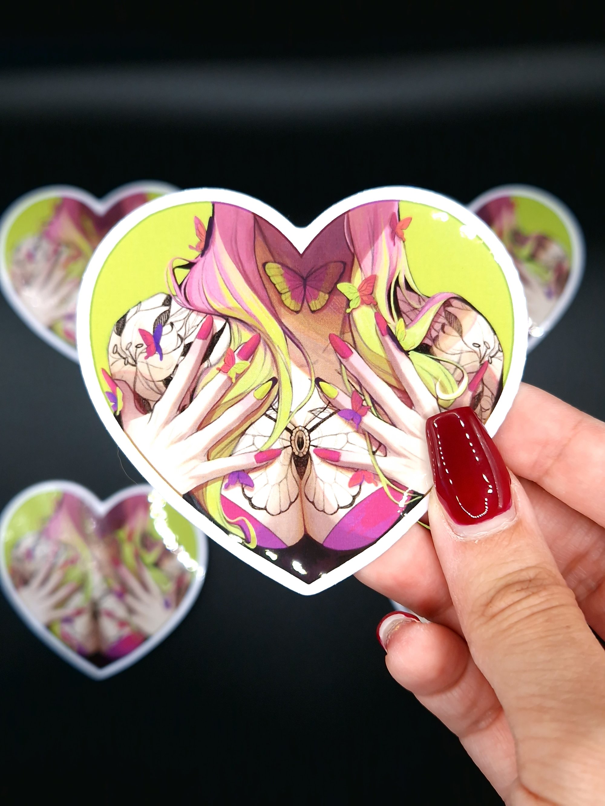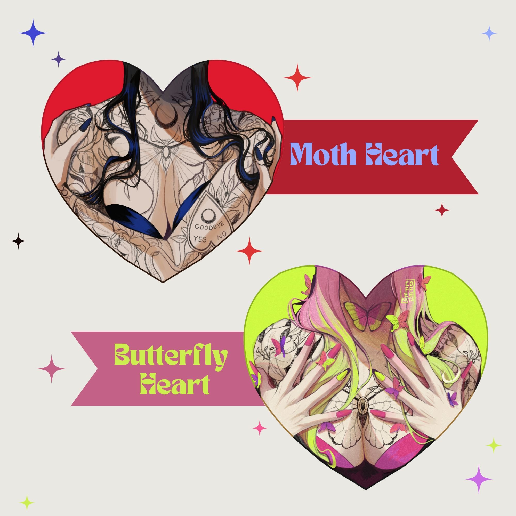 ✧ Die-cut vinyl stickers with a glossy finish, featuring illustrations of various original characters. The Moth Heart design has a starry holo layer on top creating a pretty rainbow shift. Suitable for decorating multiple surfaces such as book/journal/sketchbook covers, laptops, water bottles, etc.